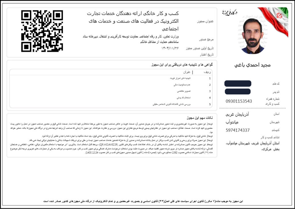 مجوز فعالیت خدمات تجارت الکترونیک سایت کوینیز